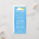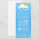 Appen för väderprognos inspirerade till neutraltens inbjudan till babydusch med moln och sol med snöflingor över blå bakgrund med anpassningsbarnas vita text och ikoner.