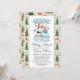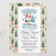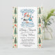 En charmerande babyduschinbjudan med ett Stork-meddelande på en festlig vinterbakgrund med träd i väntan på lite snöflake! Du kan anpassa inbjudan med dina egna uppgifter!