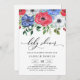 Inbjudan gäster till ditt evenemang med den här inbjudan till anpassadets babydusch. Den har vattenfärgad blommigt av rött, vitt och blått anemon med bär och grönaktiga accenter. Anpassa den här blommigtens babyduschinbjudan genom att lägga till information. Den här anemonbabyduschinbjudan är perfekt till babyduschar i vår och juli.