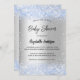 För en inbjudan till elegant och babydusch... och firar en pojke. En faux silver tittar bakgrund. Dekorerad med ljusblå konfettregn, sprinkle. Anpassa och lägg till namn och detaljer. Modern handskript i stil