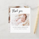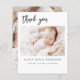 Budget Simple Baby Tack Photo Collage som har ett foto på framsidan och 4 Bild på baksidan. Korten innehåller en modern handskriven kursiv manustypografi som är elegant, enkel och modern till använda för ett nyfött pojke eller flicka som skickas ut av mor och far för det spädbarn barnet till familj och vänner.