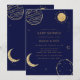 Bebisstövel vid marinblått Guld Galaxy Måne Star B Inbjudningar