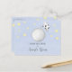 Den här designen har ett könsneutralt, sött, vismskript, registeradress för QR-kodgåvor, där en ko hoppar över måne, ett kalligrafiskt skript för elegant, en inbjudan till babydusch för trendig, en blå och gult-stjärna måne, en klassisk, traditionell daghem, en budgetvänlig vykortsmall, ett vykort för babyduschinbjudan, med webben för online snyggt