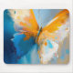 An abstract interpretation of a butterfly captured mid-transformation. Sweeping layers of blue, gold, and soft white dissolve form into movement, evoking renewal, freedom, and the fragile moment between stillness and flight.