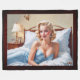 Bed är bara Bra AI Concept Art av Xzendor7; stater den leende blonda pinade flickan när hon skriver på den. Läs Kort på min webbplats: https://xzendor7.com/the-bed-is-just-fine-by-xzendor7/