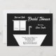 Den här sängen och badkaret inbjudningskort för möhippan har en vit handduk som sätts med namnen av bruden och trimmen tillsammans med en luxuriös vit badplatta på svart bakgrund. Orden "Bed and Bath" visas ovanför handdukarna och ord "Möhippa" visas vid högerna av handdukarna. Alla duschdetaljer visas i badkaret. Detta är en mycket unik inbjudan till en säng och badande möhippa. Copyright henishouseofpaper