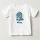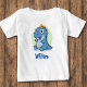 Denna specialanpassade, förtjusande barnt-shirt har en animerad babyblå dinosaurie med stora, uttrycksfulla ögon och en glad leende.