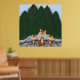 Här presenterar vi familjen räv. Mamma och hennes två ungar vilar på en hög med stenar nära floden. Baserat på ett original av © One Artsy Momma.