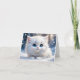 Bedårande Fluffig Vit Katt Blåa Ögon Tom Greeting Kort