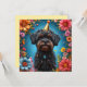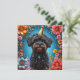 En söt svart valp som bär en gyllene festhatt, omgiven av färgglada blommor och dekorationer. Den glada atmosfären framhäver den festliga och lekfulla essensen, perfekt för festliga och glada visuella teman.
