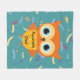 Bedårande gul uggla blå mönster barn flanellfilt.