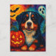 En bedårande Berner Sennenhund i en Halloween-scen i stilen alkoholbläck