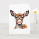 Bedårande hjort som blåser bubbelgummi tomt kort