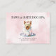 En charmig påminnelse om bokning för dina kunder med en söt hund insvept i handdukar och gurka på ögonen. Visar kunden hur deras söta husdjur kommer att bli bortskämda och behandlade som kungligheter på din husdjursvårdsverksamhet. Finns tillgänglig med bakgrund i olika akvarellnyanser och enkel klassisk enfärgad vit.