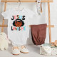 Denna söta och lekfulla design har orden "Jesus älskar mig" , tillsammans med en busig bebis-illustration full av personlighet och charm. Strålar värme, kärlek och tro, den lägger till en glad beröring av andlighet i en rolig och hjärtlig stil.