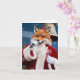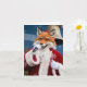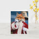 Bedårande julröd räv sjunger i tomtedräkt kort