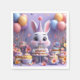 En söt kanin prydd med en blomsterkrona njuter av en livlig födelsedagsfest med färgglada tårtor, ballonger och glada dekorationer som frammanar glädje och firande i en festlig atmosfär.