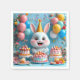 En söt kanin prydd med en blomsterkrona njuter av en livlig födelsedagsfest med färgglada tårtor, ballonger och glada dekorationer som frammanar glädje och firande i en festlig atmosfär.