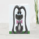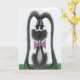 Den här söta påskkortet visar Jack, den älskvärda grå kaninen iförd sin favorit rosett i rosa. Anpassa detta söta påskkort genom att lägga till eller ta bort din text för att lämna det tomt. Det är baserat på en originalkonst av © One Artsy Momma.