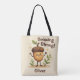 Denna personliga shoppingväska har ett sött, leende ekollon med små armar och ben som står stolt med ett glatt uttryck, symboliserar tillväxt och potential. En liten grodd växer fram från dess hatt, medan den lekfulla frasen "Växer Starkt!" visas i ett handritat teckensnitt. Mjuka pastelltoner och milda naturelement skapar en varm, upplyftande stämning.