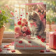 Fira kärlek med detta förtrollande tomma valentinshälsningskort med en bedårande luddig kattunge omgiven av livfulla rosa rosor, fladdrande hjärtan och en solbelyst fönsterbakgrund. Den söta tabbykatten, prydd med en rosa rosett, sitter mitt i en romantisk scen med utspridda röda hjärtan och blommande blommor, som inger värme och tillgivenhet. Detta kort är tomt på insidan, så att du kan lägga till ditt eget hjärtliga budskap till den speciella personen - perfekt för partners, vänner eller familj.