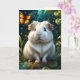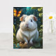 Söt akvarellkonst av ett vitt marsvin i en skog på detta tomma vykort.
