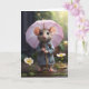 Bedårande lilla mus med ett paraply och tusenskönor. Lys upp någons dag med detta tomma vykort för födelsedag, årsdag, ny baby, tack, sympati, etc.