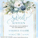 Bedårande pastellblå vita blommiga söta 16-årsfira inbjudningar