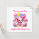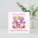 En bedårande rosa elefant firar sin födelsedag med rosa ballonger i en vacker rosa fantasivärld. Personliggör med ditt barns namn och ålder.