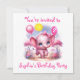 Bedårande rosa födelsedagselefant med ballonger inbjudningar