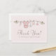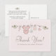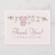 Gästerna på baby shower kommer älska detta rosa tackkort med babykläder på ett streck och fåglar som bär dem.