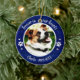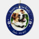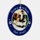 Bedårande rustik hunddjurminne anpassad bild blå julgransprydnad keramik