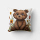 En söt seriebjörn med ljusa ögon sitter mitt i livfulla vilda blommor och utstrålar värme och glädje i en glad utomhusmiljö, vilket framkallar känslor av lycka, natur och lekfull oskuld.