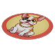 Charmande illustration av en söt serietecknad valp, sittande på en livfull cirkulär bakgrund. Perfekt för barnillustrationer, husdjursteman och glada designs.