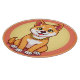 Charmfull illustration av en söt serietecknad valp, sittande på en livfull cirkulär bakgrund. Perfekt för barnillustrationer, husdjursteman och glada designs.