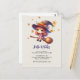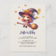 Denna charmiga Halloween-inbjudan visar en bedårande liten häxa som flyger på sin kvast, iförd en häxhatt dekorerad med en leende jack-o'-lantern och färgglade blommor. Omgiven av fallande höstlöv utstrålar hon en fantasifull och magisk stämning som är perfekt för att inbjuda gäster till din Halloween-firande. Designens söta och lekfulla atmosfär kommer säkert att sätta tonen för en rolig och festlig tillställning.