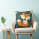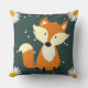Bedårande söt orange räv snöflingor och blommor marinblå kastkudde för en liten pojke.