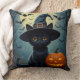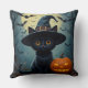 Bedårande svart katt som bär häxhatt kudde