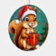 glad ekorre iklädd en tomtehatt, som håller på en inslagen present. Perfekt för säsongsbetonade hälsningar, jul-teman och festliga dekorationer.