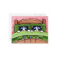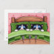 Kattkonst vykort. 2 Svart och vit katter som torkar vid 3 grått möss från lakan bakom sängen. Skapat från en originaltavla 2008 Lisa Marie Robinson