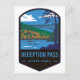 En vintage resor-badge-design av "Deception Pass State Park" med Whidbey Island och Fidalgo Island, i delstaten Washington. USA