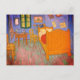 Vincent van Goghs arbete från 1889 presenteras på detta vykort. Ni kan se hans talang när det gäller perspektivaspekter. När tittaren tittar på målningen finns det en känsla av att tittaren tittar in i något - ett sovrum. Det finns en 3D-känsla för den här lägenheten yta. Det är talang! Köp som det är eller lägg till text. Offentligt arbete. Förstärkt av Sharon Lee Hudson.