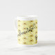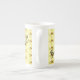 Mugg är porslin i bran och har en underligt flådd fälg och ett elegant böjt handtag. Utformningen har en mönster som består av ett basket citroner med ett litet bin på framsidan och baksidan av mugg är ord "Bee Belar!"