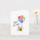 Send a cheerful birthday wish to your loved one with this cute bee greeting card that says “Happy Bee-Day!” The front of the card features a happy bee wearing a birthday hat flying with a bouquet of colorful balloons. Personalize the inside with your own note of affection to create a special moment and keepsake.