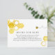 Bokar för Baby-inmatningskort med vattenfärgade honungskakor och biillustration. En bok begär att få ett kort för babydusch. "EN LITEN BEGÄRAN, VI HOPPAS INTE ATT VARA FÖR HÅRDA NÖJDA ATT GE EN BOK I STÄLLET FÖR ETT KORT SOM DE KOMMER ATT KÖPA BOK, VÄL FÖRÄLDRADE ELLER BRANA NY VÄNLIG SIG PÅ INSIDAN MED ETT MEDDELANDE FRÅN DIG!"