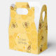 Ett sött, modernt bin mönster med små honungsbin som går runt i en glad honungskomb av gult.