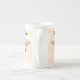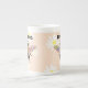 Delicate and Modern Bee design, BEE KIND Bone China Coffee Mug featuring, a bee with a sunflower on it's back and pastel coloured wings on a white daisy background.