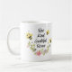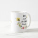Denna utformning av ett inspirerande citat: "Bee Kind, Gratnice och Modiga mugg kan ges som en gåva till en vän med ett lustigt inspirerande citat för att vara positiv varje dag.