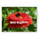 Ljud meddelande till "Bina lycklig" med ett intensivt humla som samlar in pollen från en ljusröd blomma.