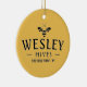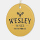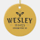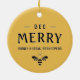 Din apiary namn på ett prydnadsföremål med ett sött stiliserat bi och budskapet BEE MERRY på baksidan.